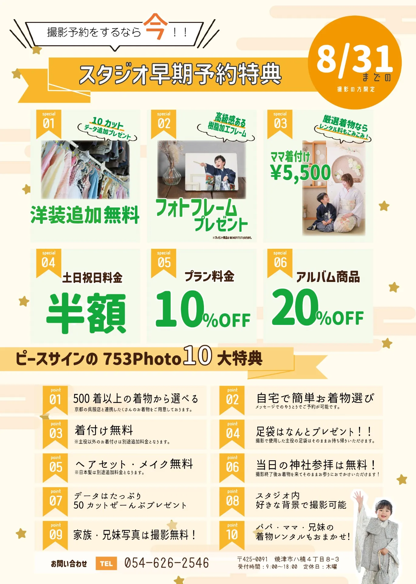 【焼津】七五三スタジオ撮影 早期予約特典 第二弾|6月〜8月限定でお得に撮影できます